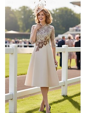 А-силуэт До колена Платье Дерби Платье для матери невесты Рукав до локтя Королева Анна Элегантный стиль Винтаж Блеск и сияние Дерби в Кентукки Сатин с Бусины
