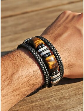Мужской браслет из натурального камня и искусственной кожи, плетеный повседневный браслет разных цветов, модное украшение для мужчин на каждый день и в уличном стиле.