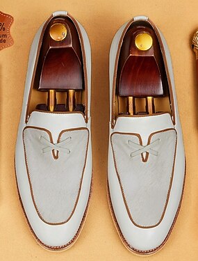мужские классические темно-синие и бежевые кожаные лоферы – двухцветные туфли в стиле ретро с элегантной отделкой в виде фестончатых элементов, идеально подходящие для официальных и повседневных случаев