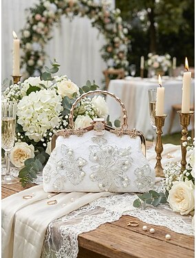 элегантная белая кружевная вечерняя сумочка с жемчужными и цветочными украшениями – стильный свадебный или праздничный аксессуар для женщин черный белый