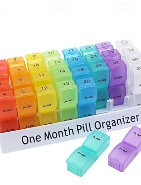 Органайзер для таблеток на месяц (принимаются 2 раза в день), таблетница на 31 день с отделениями для приема с утра до вечера, большой ежемесячный органайзер для витаминов и добавок &лекарства,