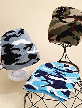 Муж. Универсальные Шапка-бини Зимние шапки Шапки бини Вязаная шапка Зимняя шапочка Синий Военно-зеленный Хлопок Жаккард Трикотаж Уютный На каждый день На выход Камуфляж Теплый