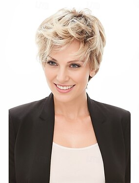 Женский парик пикси с мелированием, светлый, короткий, многослойный, взъерошенный, выглядит естественно, реалистично, синтетические волосы, термостойкие, элегантный, повседневный, модный стиль