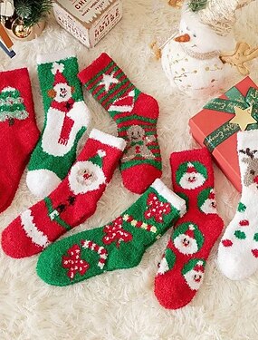 Жен. Толстые короткие носки Толстые зимние теплые носки Рождество на открытом воздухе Праздники Полиэстер Классический Классика На каждый день Эластичный Теплый 1 пара