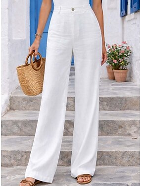 Жен. Брюки из хлопка и льна Чино Прямой силуэт Отпуск Уличный стиль Классический Полная длина Нормальная Полотняное плетение Карман Эластичная талия удобный Комфорт Удобный Неэластичная