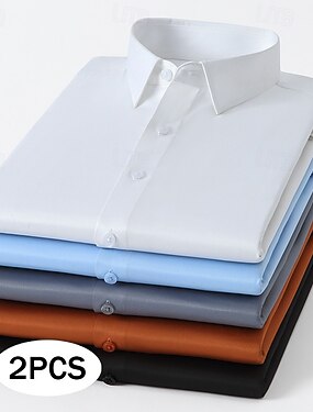 Муж. Рубашка Нежелезная рубашка Кнопка рубашка Сплошной цвет Повседневные Бизнес Оранжевый + синий Темно-синий + черный оранжевый+красный Темно-синий+красный Длинный рукав Отложной Все сезоны Одежда