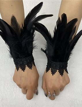 Карнавалы 2026 Рио Карнавальные Самба Аксессуары Фиолетовые Перья Кружевные Запястья Перчатки для Женщин Готический Бурлеск Манжеты с Черной Вышивкой,| Бразилия Фестивальное П Performance Костюм