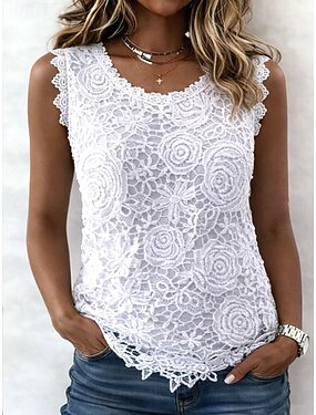 Жен. Походная рубашка Кружева Пэчворк Сплошной цвет Элегантный стиль Стиль На каждый день Без рукавов Вырез под горло Обычные топы Повседневные Синий Черный Белый Розовый Красный Лето Весна