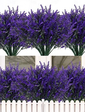 24 пучка искусственных цветов для улицы, искусственная лаванда, искусственная трава, пластиковые растения, кустарники, устойчивые к УФ-излучению, для украшения веранды, сада, окна, офиса, дома.