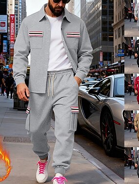 Муж. Толстовка Спортивный костюм Комплект одежды Жакет Лацкан на открытом воздухе Повседневные Спорт Кулиска Кнопка вверх Карман Полоса Черный Красный Коричневый Полиэстер Спортивная одежда