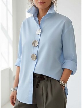 Жен. Блуза Сплошной цвет Повседневные Стиль Классический Длинный рукав Отложной Обычные топы Повседневные Синий Черный Белый Розовый Красный Лето Весна