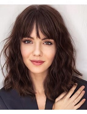 Парики из искусственных волос Кудрявый Волнистые С чёлкой Парик Длинные Темно-коричневый Искусственные волосы 26 дюймовый Жен. Модный дизайн Для вечеринок Удобный Темно-коричневый / На каждый день