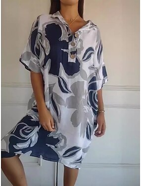 Жен. Платье до колена Искусственный хлопок и лен Платье прямого кроя Повседневное платье Мода Современное Повседневные Отпуск На выход Свободное облегание Цветочный принт Рукав до локтя