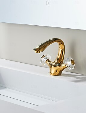 Ванная раковина кран - Классический Электропокрытие По центру Две ручки одно отверстиеBath Taps