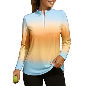 Жен. Градиент В полоску Рубашка Спортивная рубашка Футболка-поло Теннисная рубашка Длинный рукав Молния Цветочный UPF50+ Устойчивость к УФ Эластичность Влагоотводящие Дышащий Теннис Гольф Пиклбол