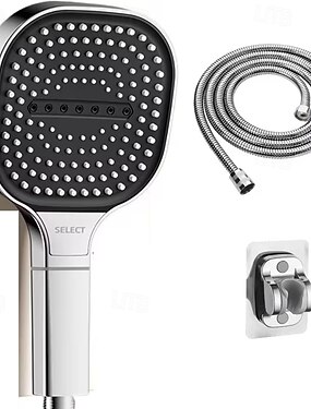 Ручная гидромассажная душевая лейка высокого давления с шлангом и регулируемым кронштейном, 3 режима распыления, квадратная форма, диаметр 130 мм, настенное крепление из АБС-пластика, фильтр в