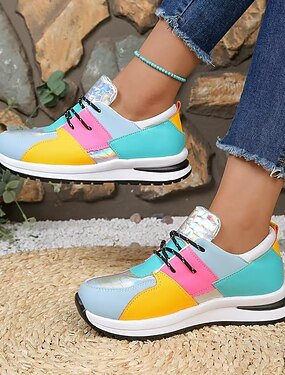 Женские яркие массивные кроссовки – модная спортивная обувь на шнуровке с голографическим и неоновым дизайном, удобная обувь для бега на каждый день и для занятий спортом.