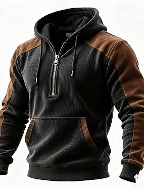 Муж. Толстовка Толстовка с застежкой-молнией Черный Военно-зеленный Темно синий Хаки Темно-серый Половина молния Полотняное плетение Цветовые блоки Для вечеринок Офис Для занятий спортом
