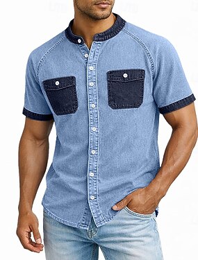 Муж. Рубашка Повседневная рубашка Кнопка рубашка Рубашка из 100% хлопка с кислотной стиркой Светло-зеленый Лиловый Хаки Серый Светло-синий С короткими рукавами Полотняное плетение дедушкин воротник