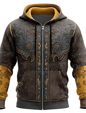 Муж. Ковбой Костюм Толстовка Жакет Западный ковбой Печать по всей поверхности Длинный рукав Молния Отпуск Уличная одежда Небесно-голубой Коричневый Зеленый Серый Молния Осень Зима Дизайнер S M L XL