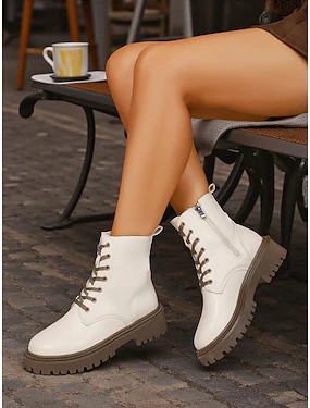 Женские белые ботинки из искусственной кожи на шнуровке с боковой молнией и массивной подошвой — стильные армейские ботинки для кей-попа, уличной моды и повседневных образов.