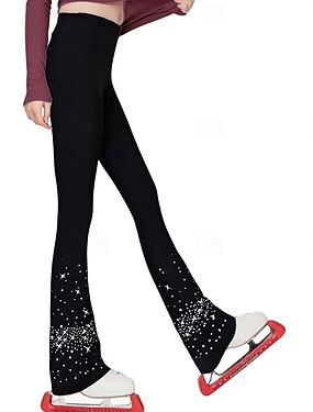 Штаны для фигурного катания женские, для девочек, для катания на коньках, черные, эластичные, для тренировок, соревнований, для фигурного катания, термобелье с кристаллами и стразами для фигурного
