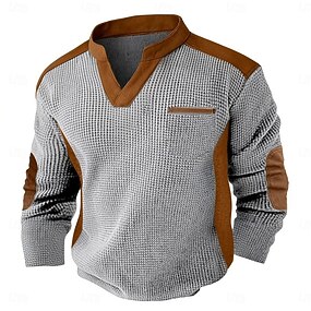 Муж. Вафельный тройник Мужские рубашки с налокотниками Длинный рукав V-образный вырез Весна & осень Все сезоны Сплошной цвет Текстура Мода Классический На каждый день Карманы