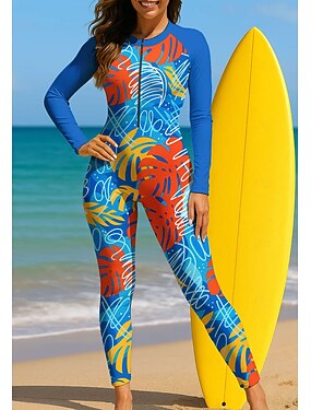 Жен. Рашгард Рашгард на все тело Цельный костюм для серфинга Цветочные тропический Застегнуться со встроенным бюстгальтером Передняя молния УФ-защита от солнца Закрытая чашечка UPF50+