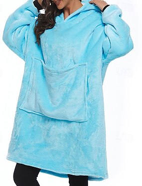Жен. Пижамы Домашняя одежда Мода На каждый день Носимая толстовка-одеяло Чистый цвет Карман Платья Отпуск Дом Длинный рукав Вырез под горло Черный Коричневый Темно-синий Светло-синий Осень Зима