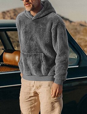 Муж. Ковбой Флис Худи Мода Круто Повседневные Винтаж Ретро Длинный рукав Капюшон Праздники Уличная одежда Черный Коричневый Цвет хаки Молния Карман Осень Зима Дизайнер S M L XL XXL XXXL