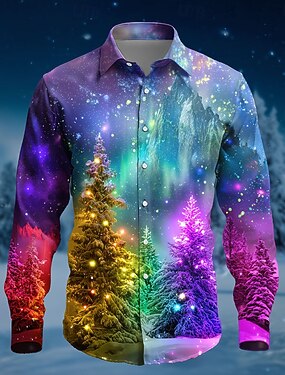 Новогодняя тематика Муж. Новогодняя ёлка Аврора Новогодние костюмы Рубашка Кнопка рубашка Длинный рукав Веселая на открытом воздухе Праздники Весна Осень Отложной 3D печать рубашки с воротником