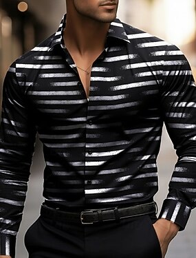 Муж. Геометрический принт Полоски Градиент цвета Рубашка Кнопка рубашка Длинный рукав Мода Повседневная на открытом воздухе На каждый день Весна Осень Отложной 3D печать рубашки с воротником