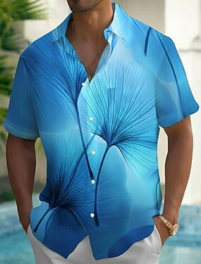 Муж. Лист Градиент цвета Тропические растения Гавайская рубашка Кнопка рубашка Рубашка Алоха С короткими рукавами Гавайский Отпуск Лето Весна Отложной 3D печать рубашки с воротником Передний карман