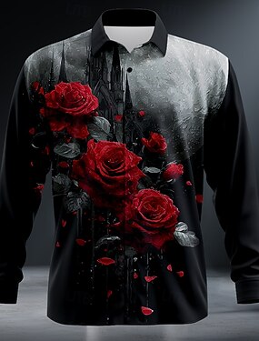 Муж. День мёртвых Роуз Рубашка Кнопка рубашка Длинный рукав Темный панк-готика на открытом воздухе Праздники Лето Весна Отложной 3D печать рубашки с воротником Черный