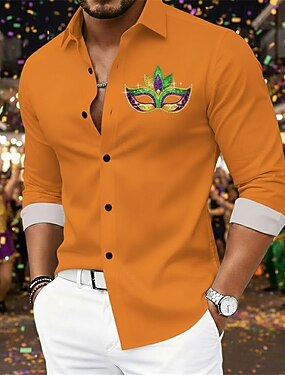 Мужская рубашка с графическим принтом для вечеринки в стиле Марди Гра – классическая карнавальная рубашка на пуговицах.