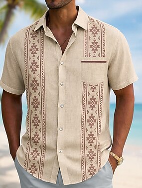 Муж. Ацтеков Этно Этнический Рубашка Кнопка рубашка С короткими рукавами Отпуск Гавайский на открытом воздухе Гавайский Праздники Лето Все сезоны Отложной Пуговицы С принтом