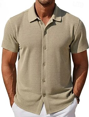 Муж. Рубашка Текстура Повседневная рубашка Кнопка рубашка Черный Белый Хаки С короткими рукавами Полотняное плетение Отложной Повседневные Уличная одежда С отверстиями Одежда