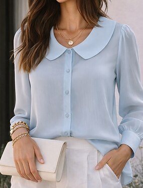Жен. Рубашка Повседневная рубашка Пляжная рубашка Кнопка рубашка Сплошной цвет Полотняное плетение Элегантный стиль Отпуск Мода Длинный рукав Воротник Питер Пен Обычные топы