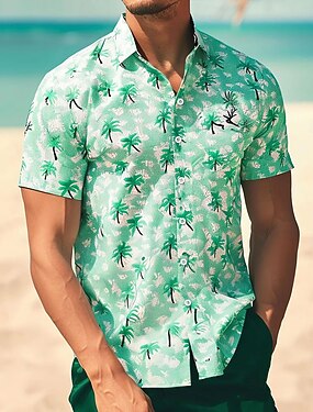 Муж. Кокосовая пальма Тропические растения Тики Гавайская рубашка Кнопка рубашка Рубашка Алоха С короткими рукавами Гавайский Отпуск Праздники Одежда для пляжа Лето Весна Отложной 3D