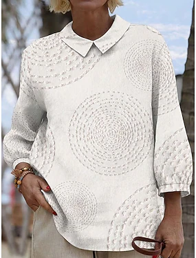 Блузка для женщин с длинным рукавом воротником Питер Пэн повседневная графика абстрактная винтажная тропическая стильная обычные топы ежедневная печать с кнопками белый розовый голубой лето весна