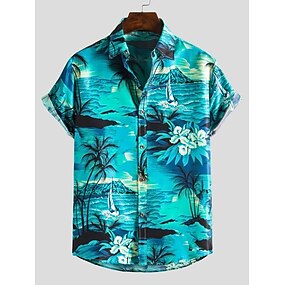 Муж. Пальма Море Яхты Рубашка Гавайская рубашка Рубашка Алоха С короткими рукавами Рубашка Воротничок Воротник с уголками на пуговицах (button-down) Оригинальный рисунок Богемный Пляжный стиль