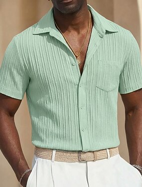 Муж. Рубашка Летняя рубашка Повседневная рубашка Пляжная рубашка Кнопка рубашка Рубашка жаккардовая Синий Черный Белый Насыщенный синий Зеленый С короткими рукавами Полотняное плетение Полосы / волосы