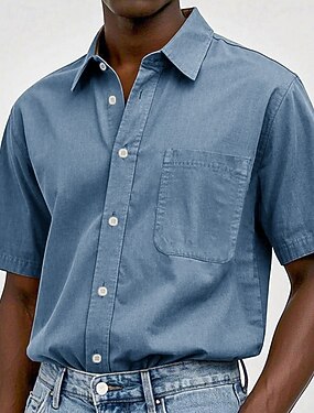 Муж. Рубашка Повседневная рубашка Вельветовая рубашка Кнопка рубашка Синий Черный Белый Зеленый Серый С короткими рукавами Полотняное плетение Лацкан Повседневные На выход Карман Одежда