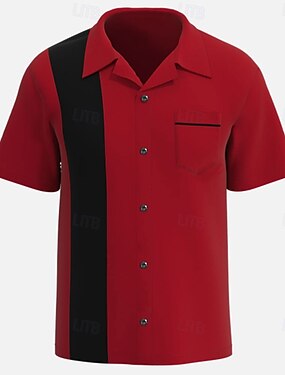 Муж. Сплошной цвет Рубашка для боулинга Кнопка рубашка С короткими рукавами Спортивные спорт Путешествия Лето Отложной Карман Черный Белый Розовый Красный