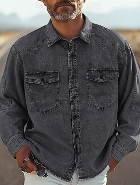 Муж. Северный олень Рабочие рубашки Западная рубашка Рубашка-карго Длинный рукав На каждый день Для занятий спортом На выход Осень Зима Отложной Кнопка вниз Черный Военно-зеленный Хаки
