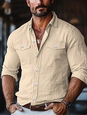 Муж. Рубашка из хлопка и льна Полотняное плетение Отпуск На каждый день Черный Белый Розовый Насыщенный синий Длинный рукав Рубашечный воротник Весна & осень Одежда Кнопка вниз