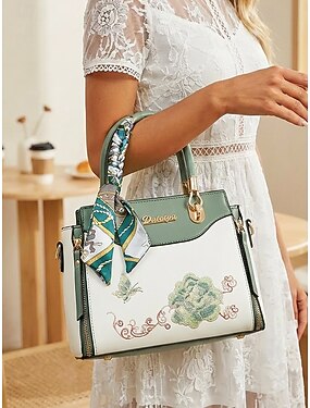 Женская сумочка с вышитыми цветами и отделкой в виде шарфа, искусственная кожа, несколько цветов, элегантный повседневный стиль, идеально подходит для повседневной носки, офиса и светских мероприятий.