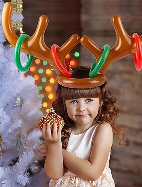 Рождественский семейный набор для игры в метание колец с рогами оленя (4 рога + 16 колец), надувная игрушка для вечеринки, бросающая кольца, весёлая праздничная игра для родителей и детей &взрослые