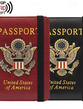 Держатель для паспорта с защитой от RFID для женщин и мужчин, кожаный дорожный кошелек для паспорта с металлическим 3D-значком, аксессуары для держателя проездных документов.