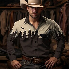 Муж. Ковбой Западная рубашка Кнопка рубашка Ковбойская рубашка Длинный рукав Винтаж западный стиль На каждый день Наступила зима Весна Отложной Рубашки с воротником 3D печать Передний карман